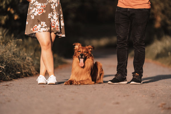 Für ein Shooting ist es von Vorteil, wenn dein Hund einige Grundkommandos wie "Sitz" "Bleib" oder "Platz" kann. So sind wir etwas flexibler, was die Bildgestaltung angeht.